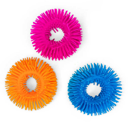 Wiggly jiggly novelty wristbands available in 3 neon colours, pink, orange and blue