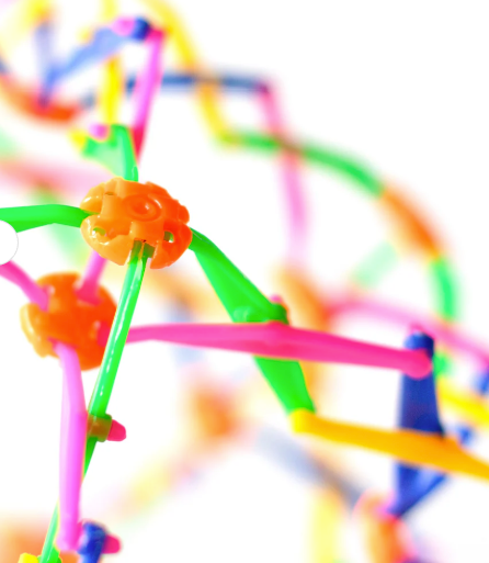 Spherical web of several inter-connected scissor joints. This series of colourful, flexible joints open and close when pushed and pulled, making an expanding ball toy that’s incredibly addictive to play with.